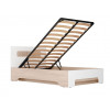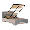 Оригинальная форма корпуса и комбинированное изголовье делают модель выразительным элементом интерьера. Основание с ламелями усиливает ортопедические свойства матраса и обеспечивают хороший воздухообмен спального места.