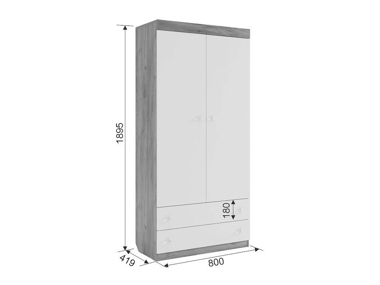 Широкий распашной шкаф: 190 х 80 х 42 см.