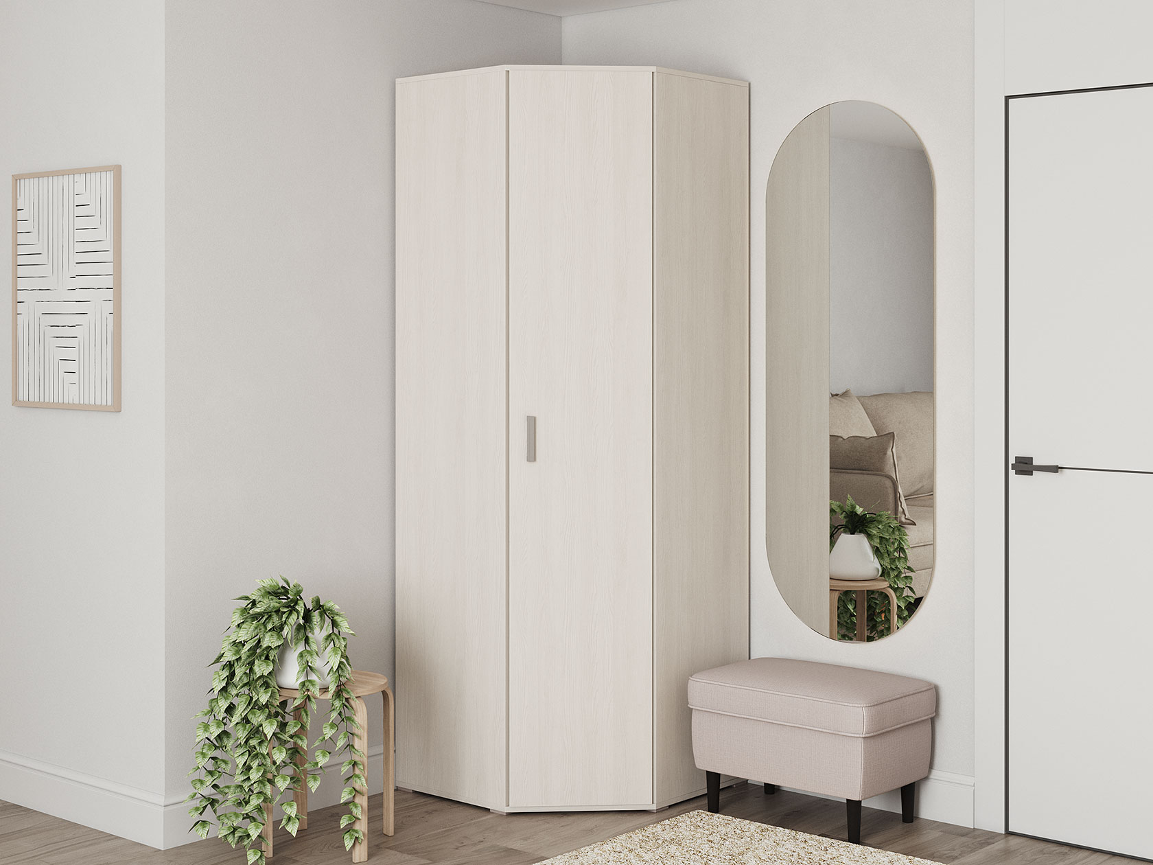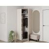 Модель позволит удобно хранить верхнюю, в том числе зимнюю, одежду. В левой части расположен ряд полок для аккуратного хранения сложенных вещей. На антресольной полке легко поместятся коробки с обувью и другими сезонными вещами.