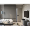 Внутри расположены три отделения, где удобно спрятать содержимое от пыли. На фасадах нет фурнитуры: дверцы удобно открываются за скошенный под углом край. Модель можно установить в качестве антресоли для шкафов одноименной серии.