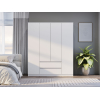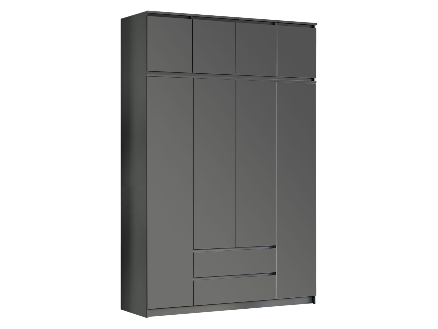 Важное преимущество модели — отдельные секции со штангами, которые позволяют разделить верхнюю одежду и остальной текстиль. Шкаф оборудован выдвижными ящиками для аксессуаров, нижнего белья, носков и других мелочей.