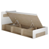 Подъемный механизм обеспечивает быстрый доступ к коробу, где можно хранить спальные принадлежности или сезонные вещи. Современный дизайн адаптируется к различным интерьерным стилям.