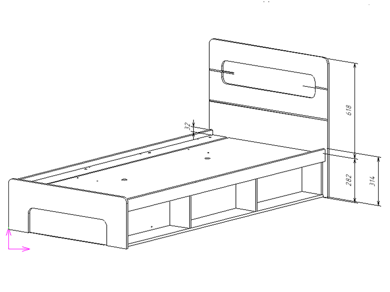 Высота ниши под матрас: 3,2 см.