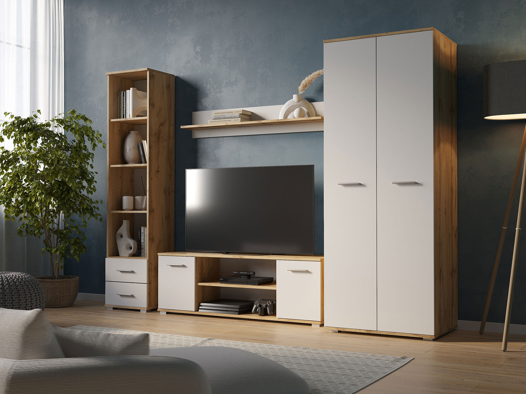 Вместительные элементы позволят компактно расположить одежду, книги и прочие необходимые вещи. Строгий дизайн с лаконичными ручками привлекательно смотрится в современном интерьере и подчеркивает модный тренд на минимализм.