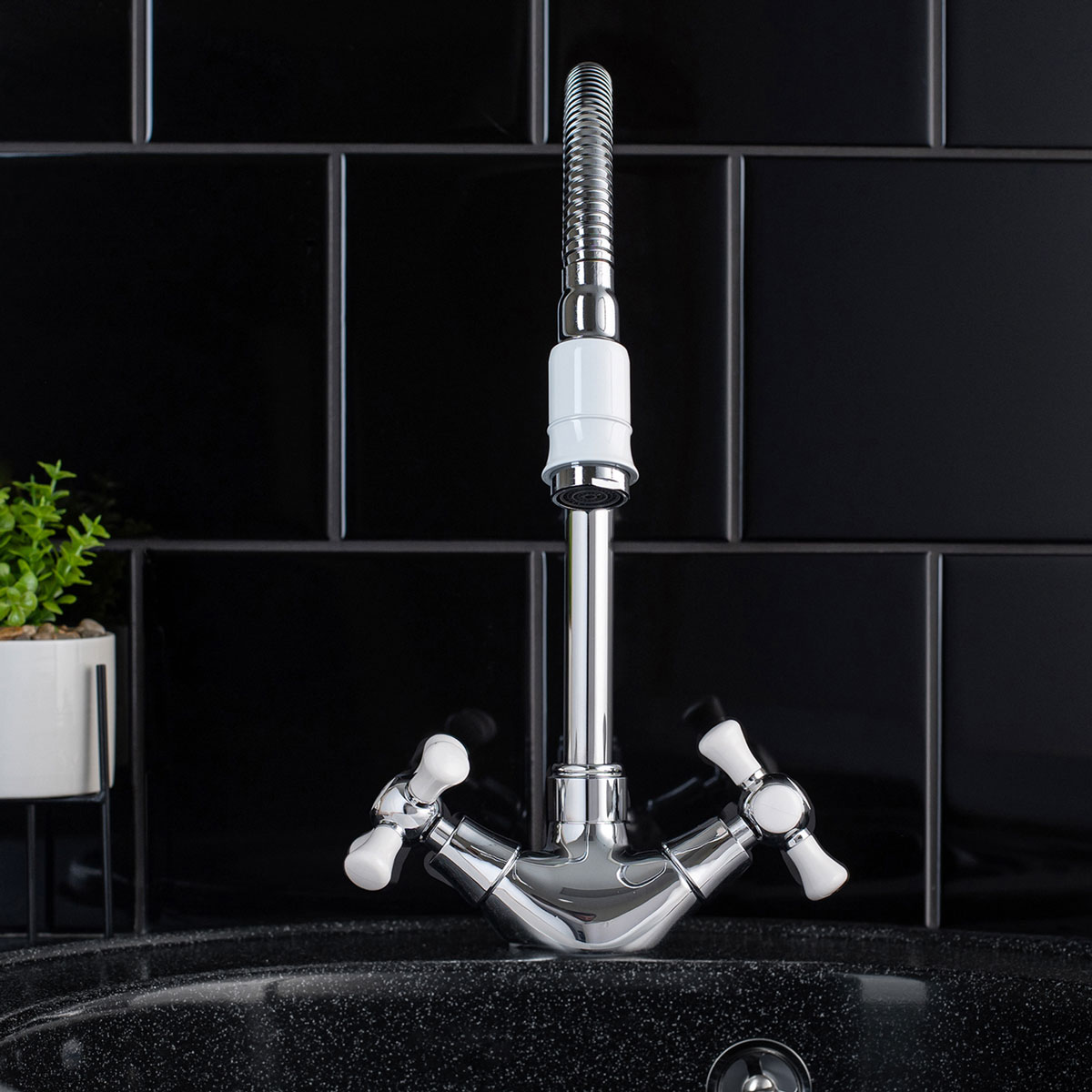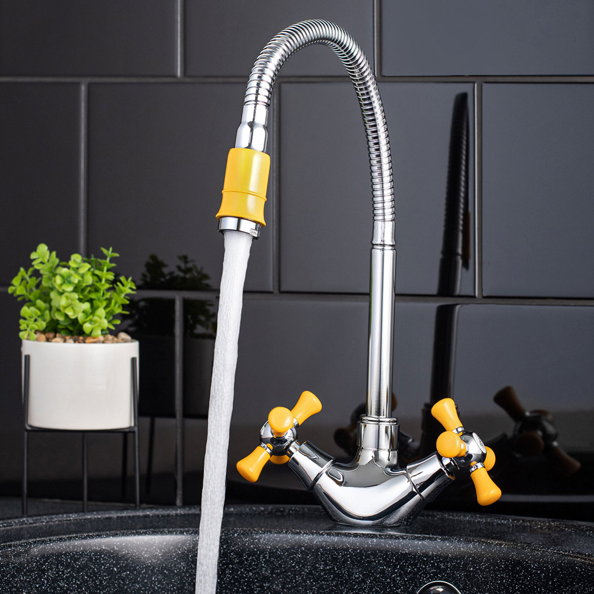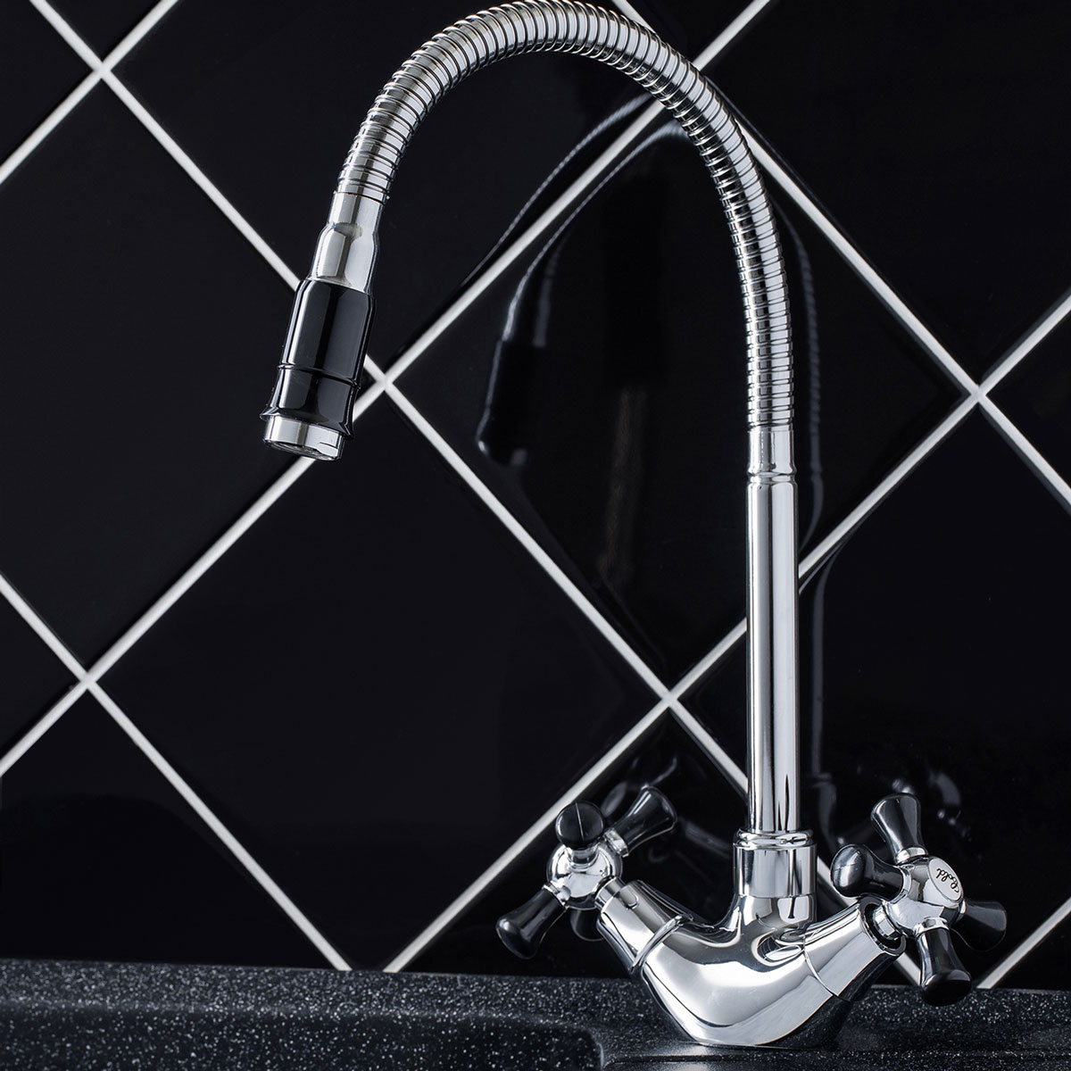 Тип смесителя: два вентиля, с гибким изливом, с аэратором.