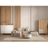 Вместительный шкаф и просторный комод — отличный тандем, который будет поддерживать порядок и обеспечит грамотное хранение. Детали с древесной текстурой и фрезеровка на фасадах создают уютную атмосферу.