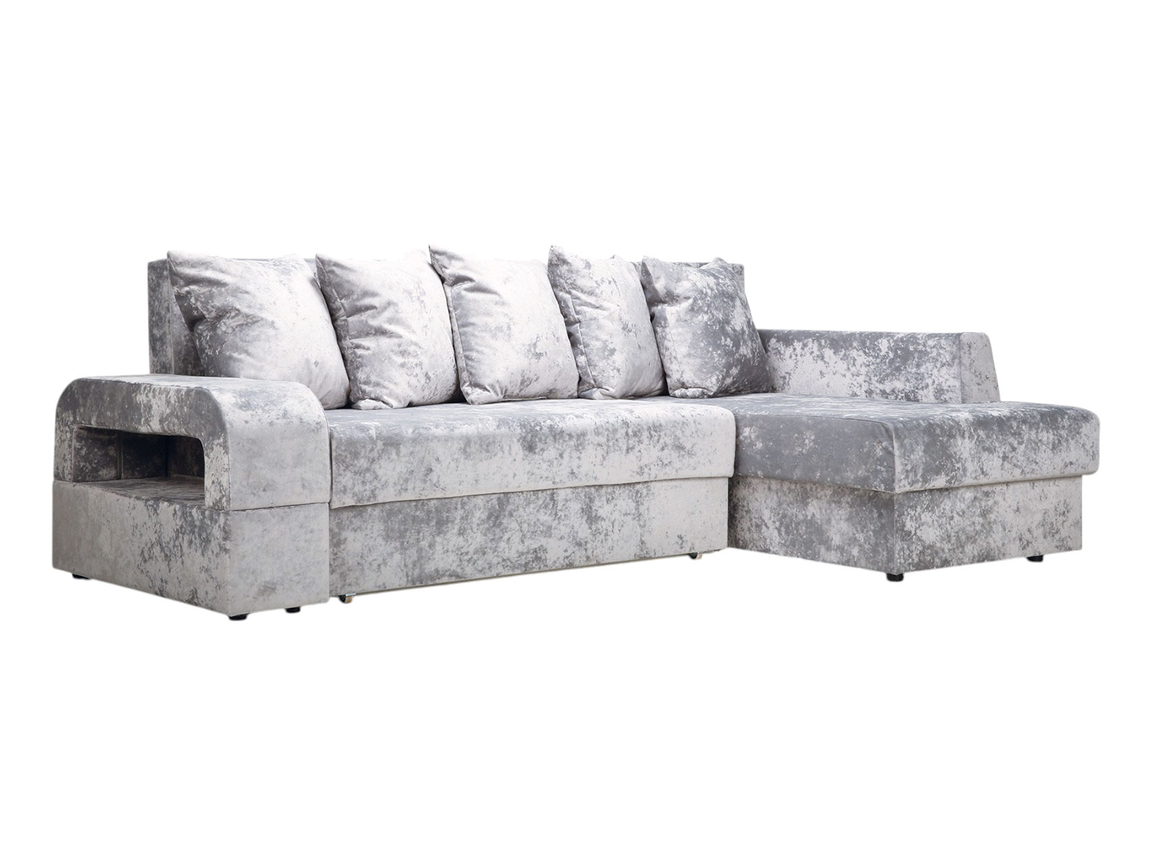 С одной стороны расположен широкий подлокотник с нишей для хранения, а с другой — оттоманка, на которой удобно отдыхать полулежа. Объемные подушки позволяют регулировать глубину посадки и располагают к уютному отдыху.