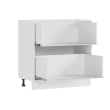 Благодаря направляющим полного выдвижения пользоваться ящиками очень удобно. Регулируемые ножки обеспечивают устойчивость модуля даже на полу с небольшими неровностями. Сдержанные фасады с фрезеровкой гармонично сочетаются с разными стилями оформления интерьера.