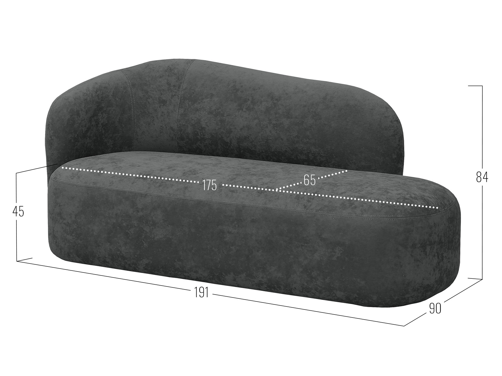 Модель можно использовать с целью зонирования пространства и комбинировать с другой мягкой мебелью. Плавный силуэт и отсутствие острых углов создают компактный и визуально легкий облик. Сиденье с глубокой посадкой и наполнитель из пены Memory дарят невероятный комфорт. На кушетке удобно расположиться за чтением книги или обеспечить дополнительное место для рассадки гостей.