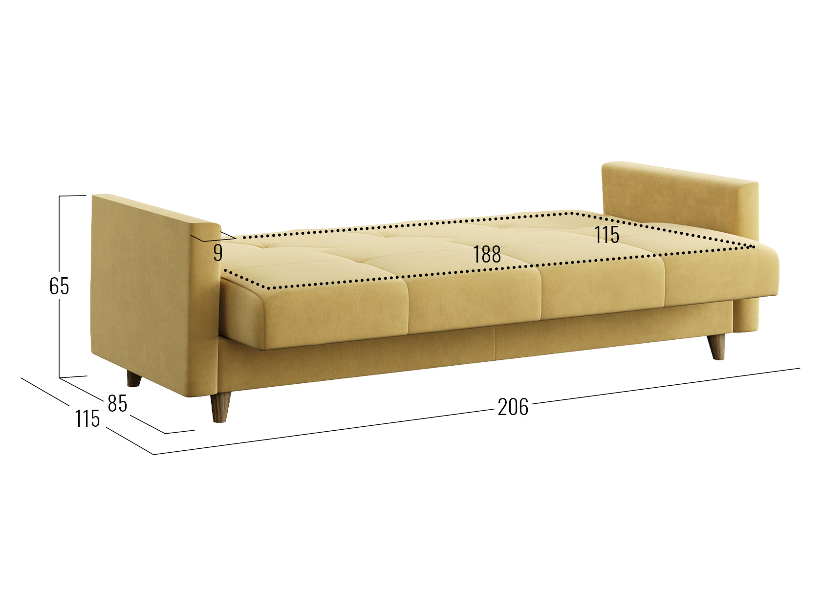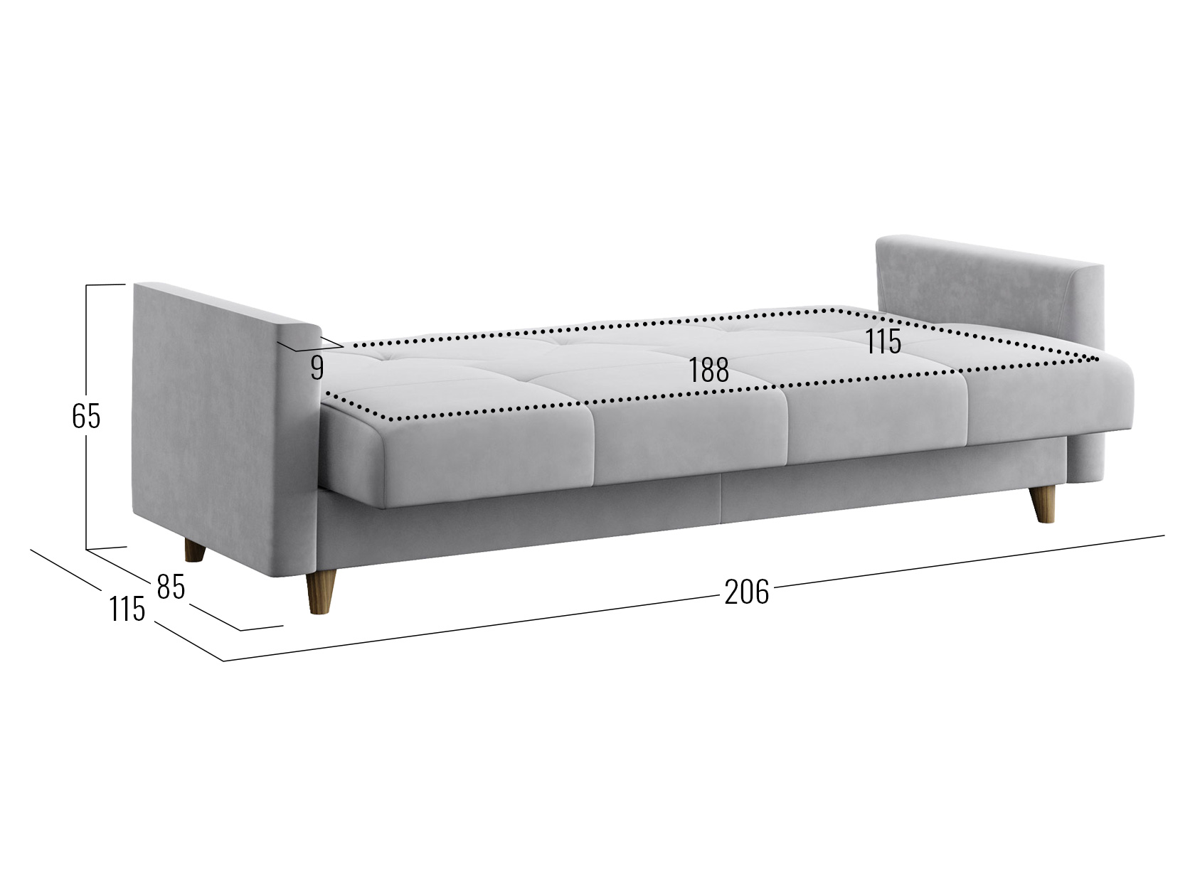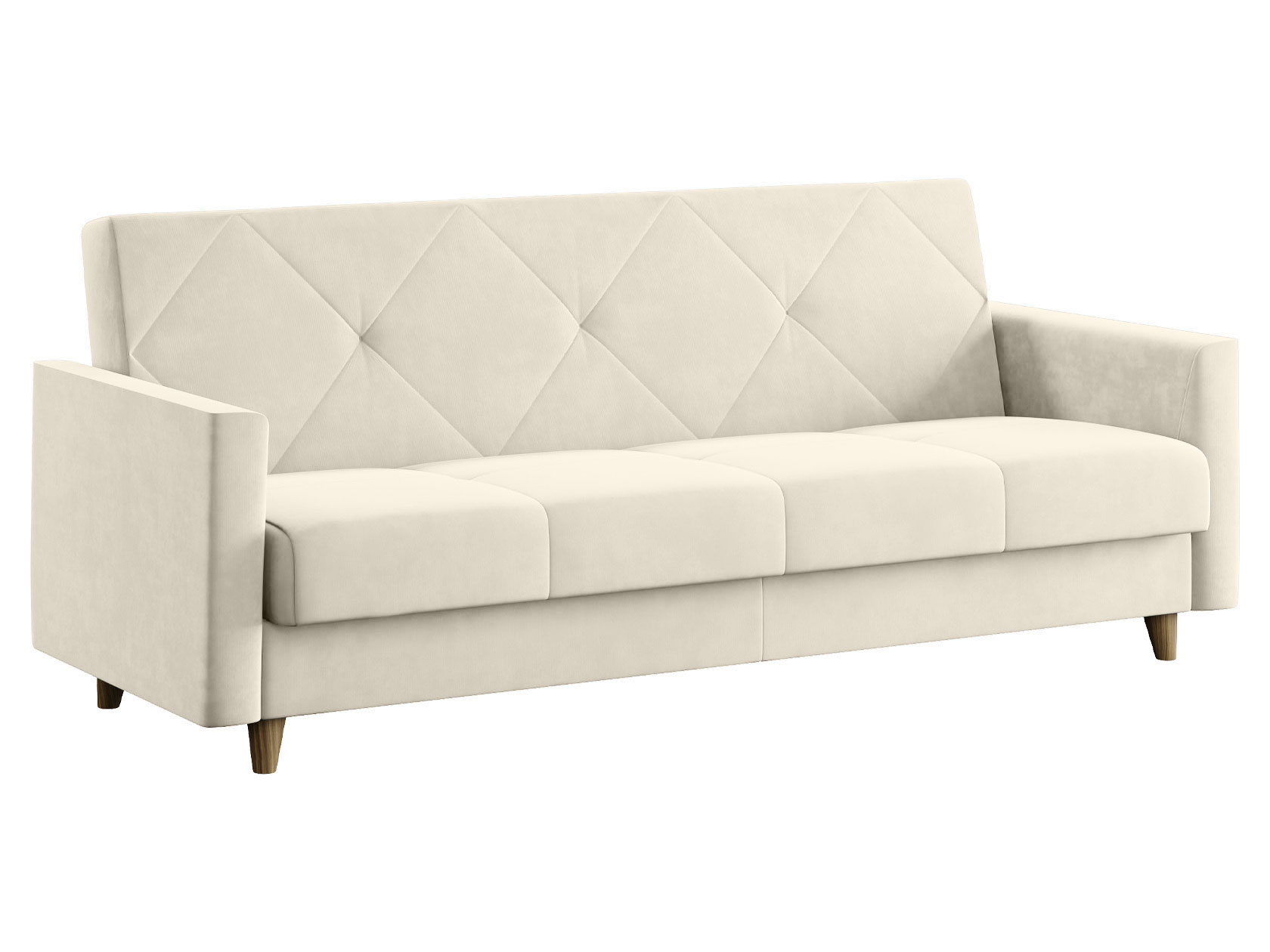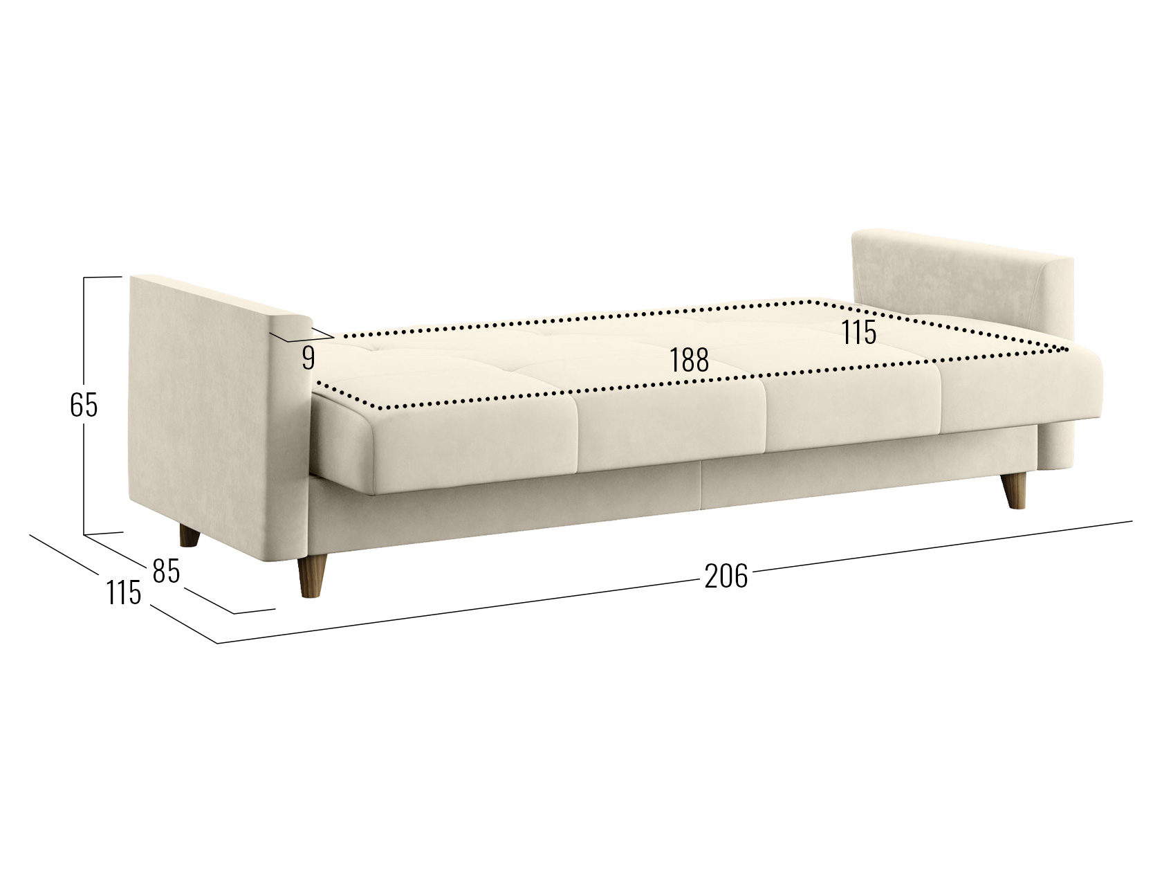 Днем модель станет комфортным местом для отдыха, а ночью легко трансформируется в удобную кровать. В дизайне сделан акцент на идеальную симметрию и строгость линий. Небольшие ножки и декоративная строчка добавляют стильных акцентов обстановке, а бельевой короб позволяет хранить в быстром доступе постельные принадлежности.