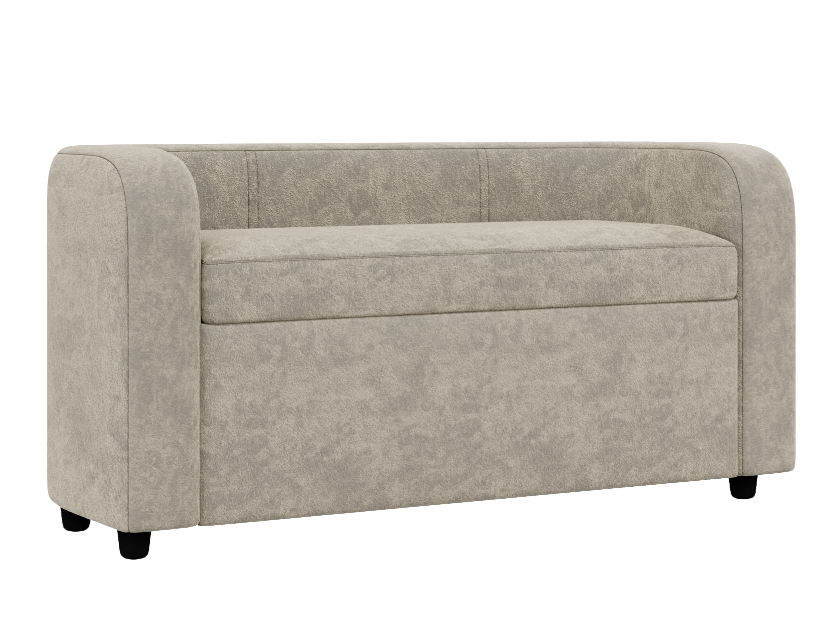 Спинка и подлокотники образуют единую линию, подчеркивая лаконичность дизайна. В качестве обивки используется износостойкий и простой в уходе материал. Под сиденьем находится глубокий короб, который создает дополнительное место для хранения вещей.