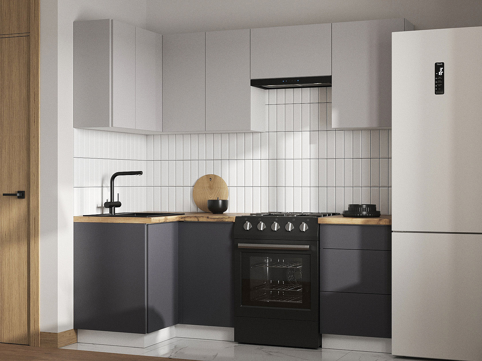 Угловое расположение элементов оптимизирует пространство и создает удобную рабочую зону для ежедневного приготовления блюд. Выдвижные ящики оснащены направляющими с плавным ходом и обеспечивают быстрый доступ к необходимой утвари.
