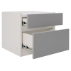 Модель позволит спрятать зарядку, крем, любимую книгу или планшет и расположить на поверхности ночник либо красивый декор. На фасадах отсутствует фурнитура, ящики открываются легким нажатием руки.