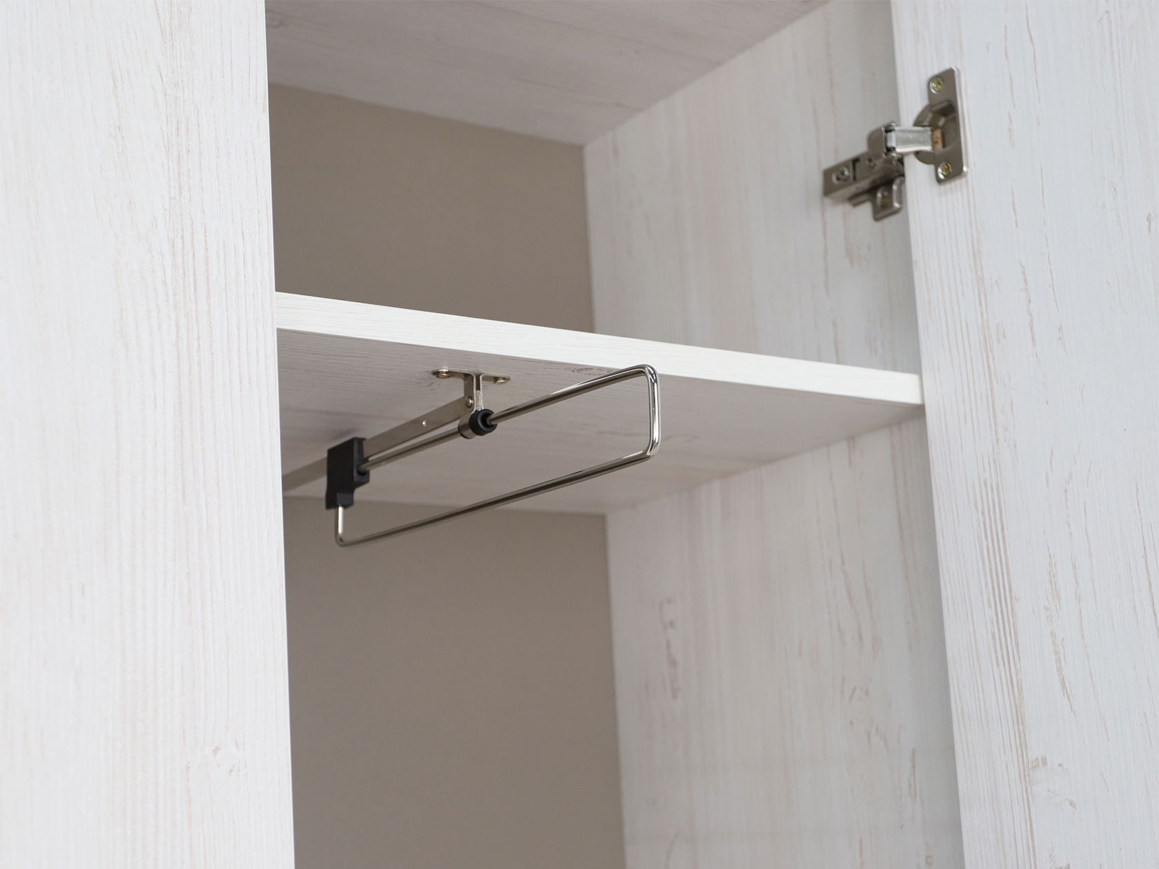На прочных крючках можно развесить пальто, плащи, сумки и зонты. Открытые ниши с решетками подойдут для нескольких пар обуви. Мягкие накладки создают уютный акцент интерьера.