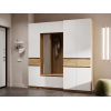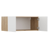 За распашными дверцами с гладкими матовыми фасадами находится просторное отделение, где можно разместить сезонные вещи, коробки и аксессуары, которые требуются редко.