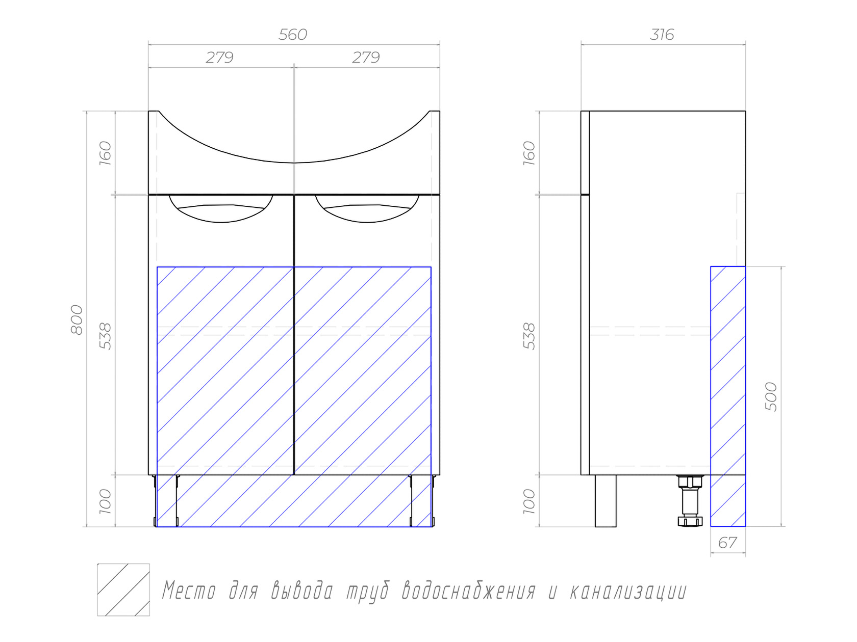 Габариты раковины (ВхШхГ):