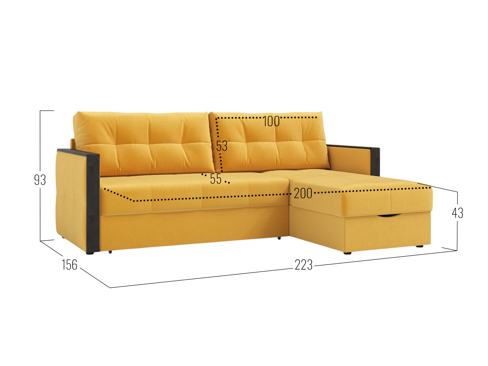 Посадочное место без подушек (ШхГ): 200 х 75 см.