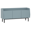 За распашными дверцами расположены три отдельные секции для хранения книг, одежды и различных предметов обихода. Поверхность с бортиками станет удобной площадкой для размещения телевизора. Высокие ножки добавляют интерьеру визуальной легкости, а отсутствие ручек создает минималистичный облик мебели.