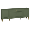 Идеально подобранные элементы организуют пространство для телевизора, сопутствующей техники и всех необходимых вещей. Изюминка коллекции — рамочные фасады с оригинальной фрезеровкой и фурнитура в золотом оттенке. Благодаря доводчиками пользоваться мебелью приятно и комфортно.