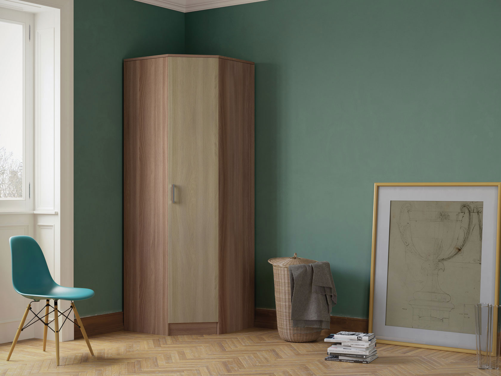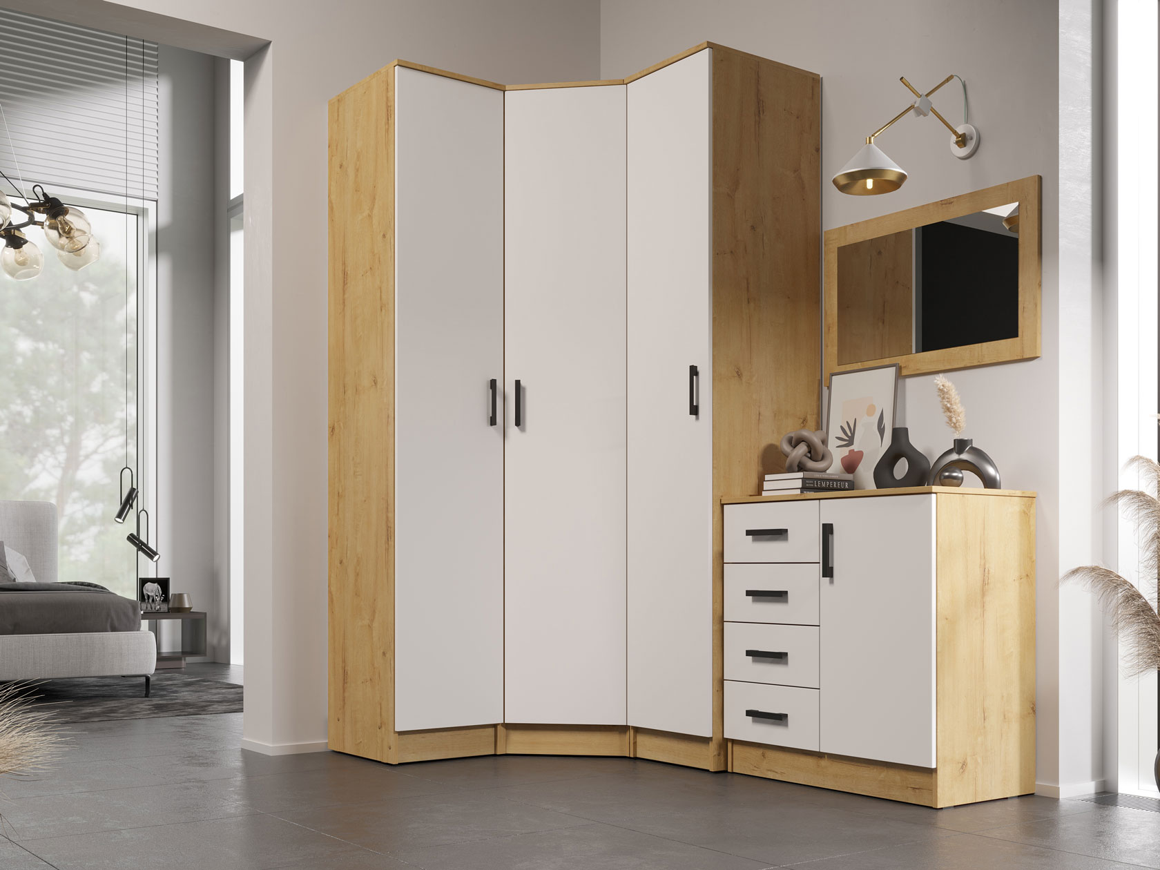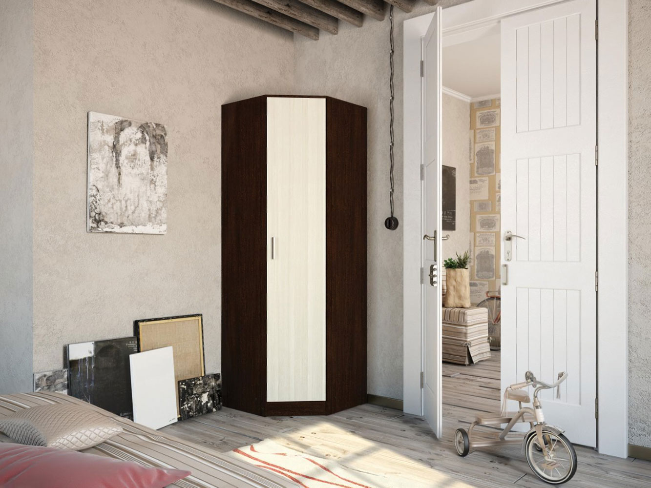 Внутри предусмотрены удобные полки и ниша со штангой для плечиков, где легко разместить предметы гардероба, постельные принадлежности, коробки и даже чемодан. Гладкий матовый фасад дополнен лаконичной ручкой. Минималистичный дизайн легко адаптировать под большинство современных интерьеров.