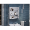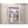 Зеркальная дверца и встроенная LED-подсветка добавляют удобства эксплуатации. Внутри расположены полки, которые подходят для хранения косметики, средств гигиены и других необходимых мелочей. Влагостойкие материалы обеспечивают долговечность.
