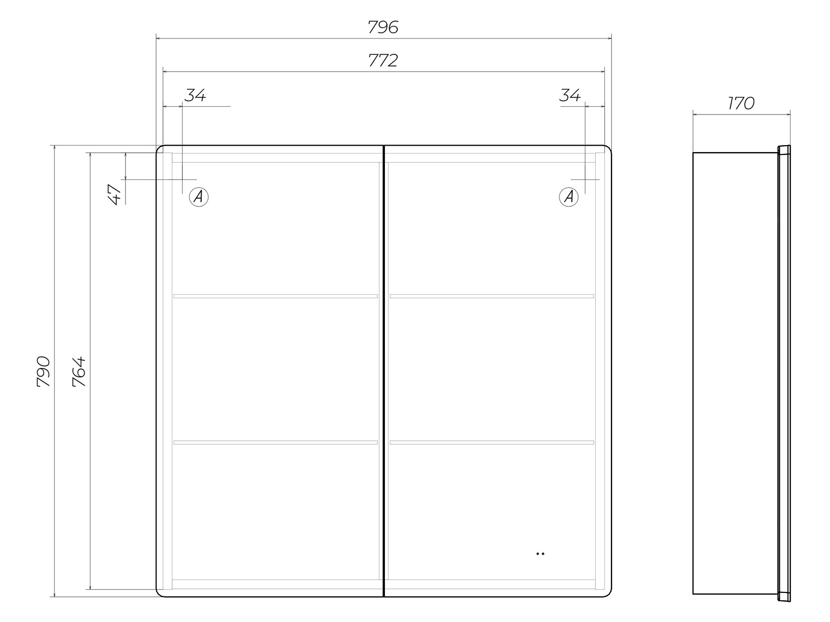 Зеркальный / 80 см / Без функции антизапотевания