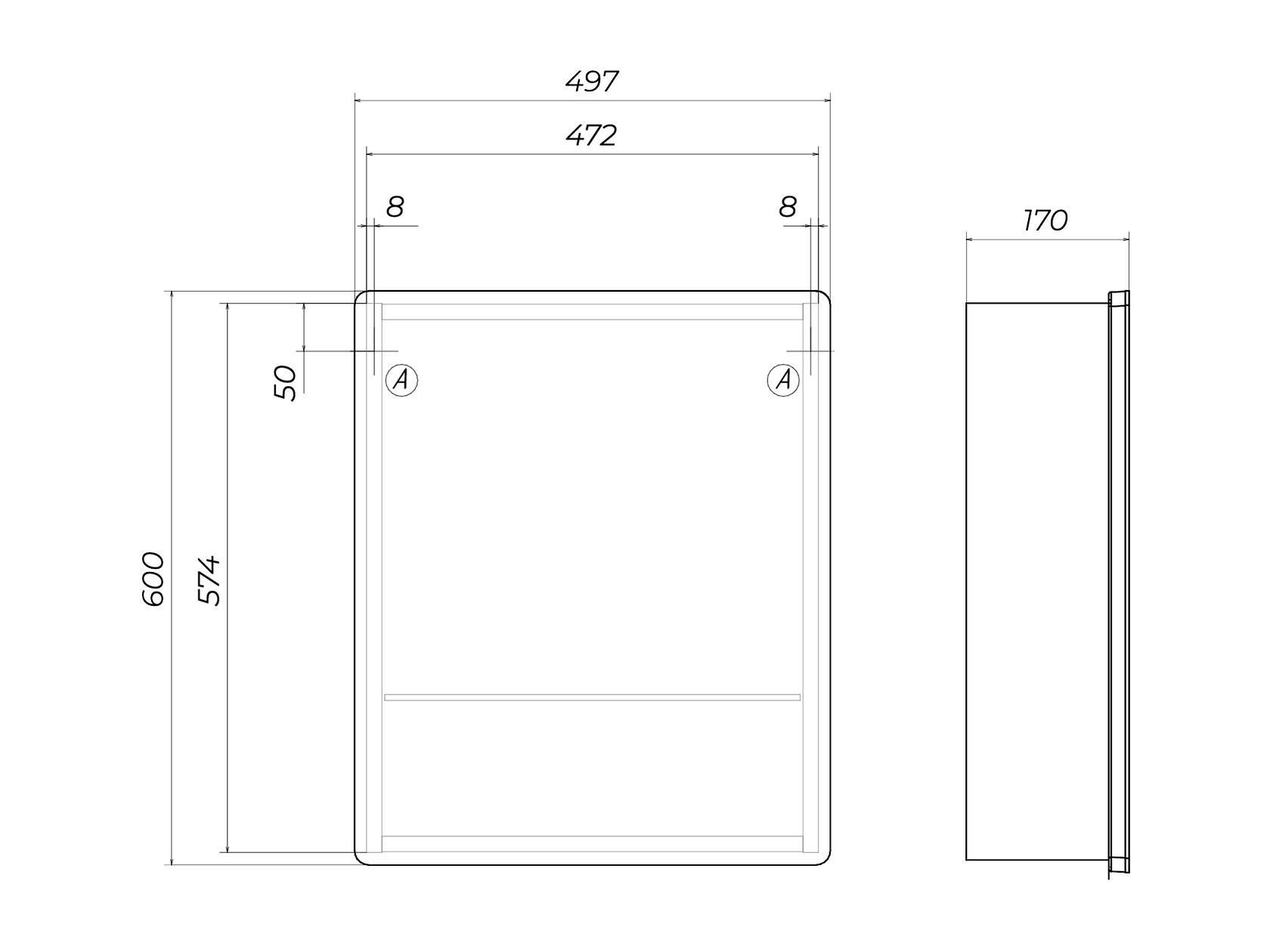 Зеркальный / 60 см / Без функции антизапотевания