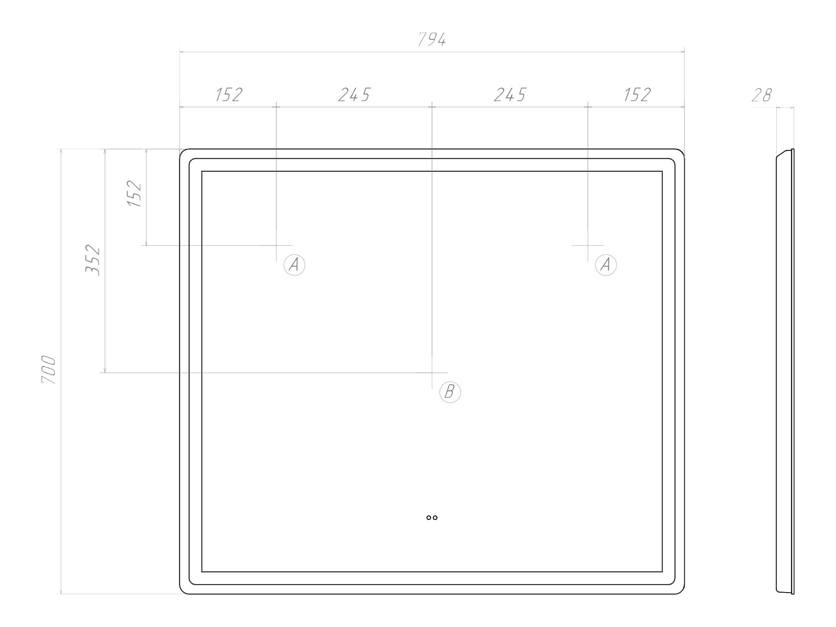 Зеркало LED: 70 х 60 х 2,8 см.