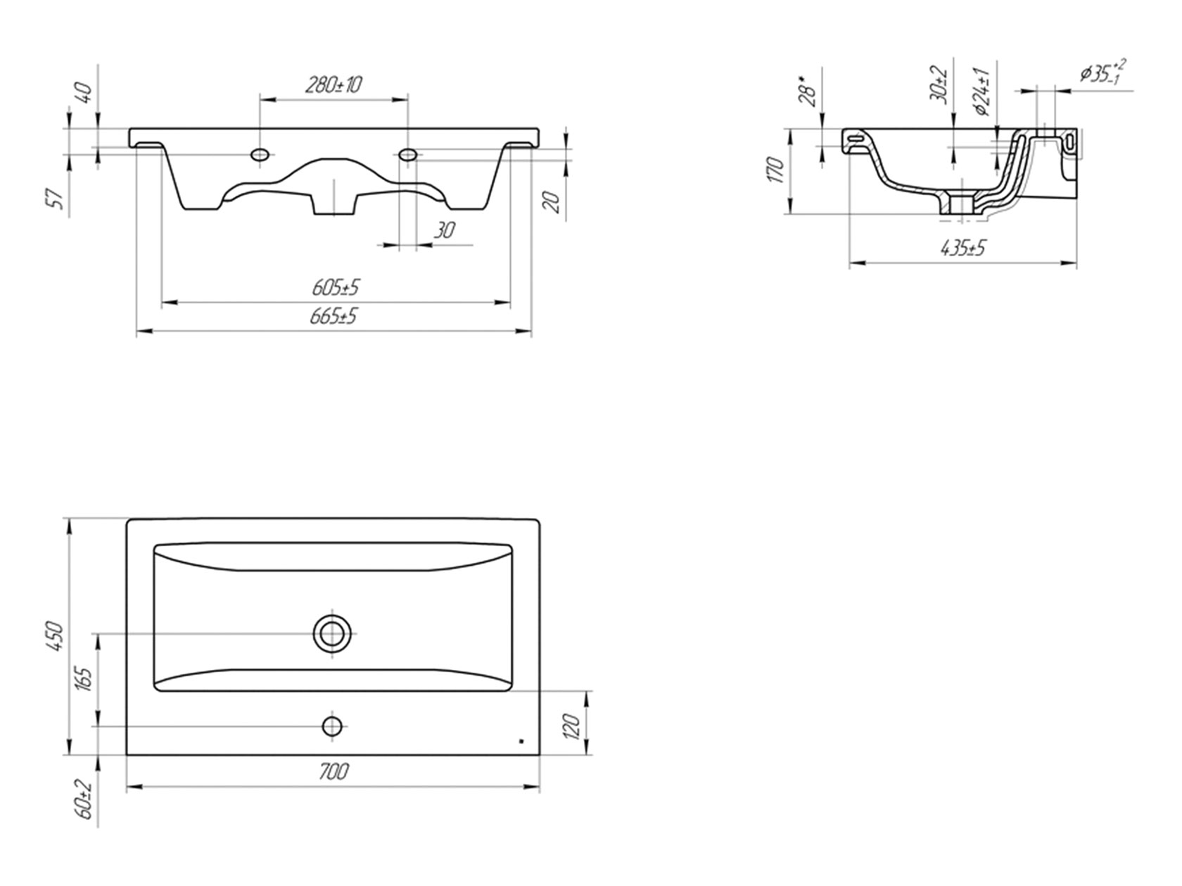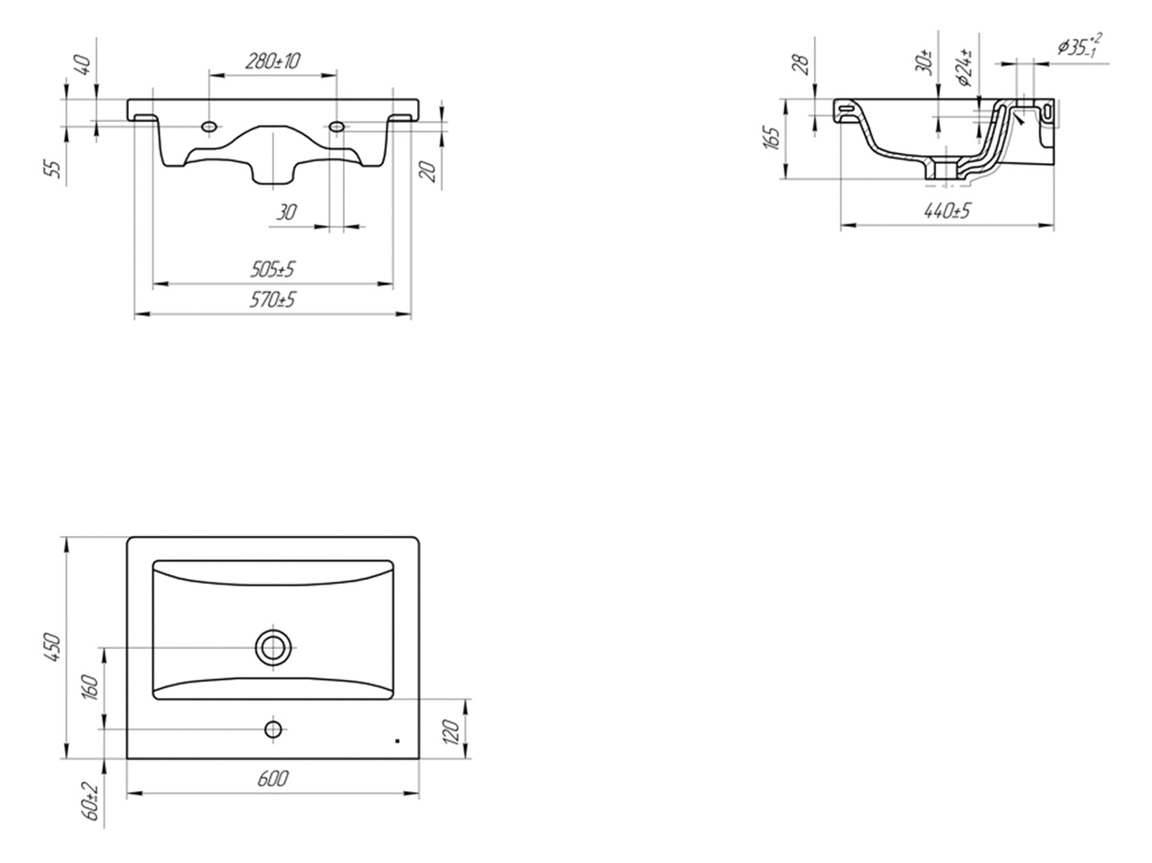Раковина: 16,5 х 60 х 45 см.