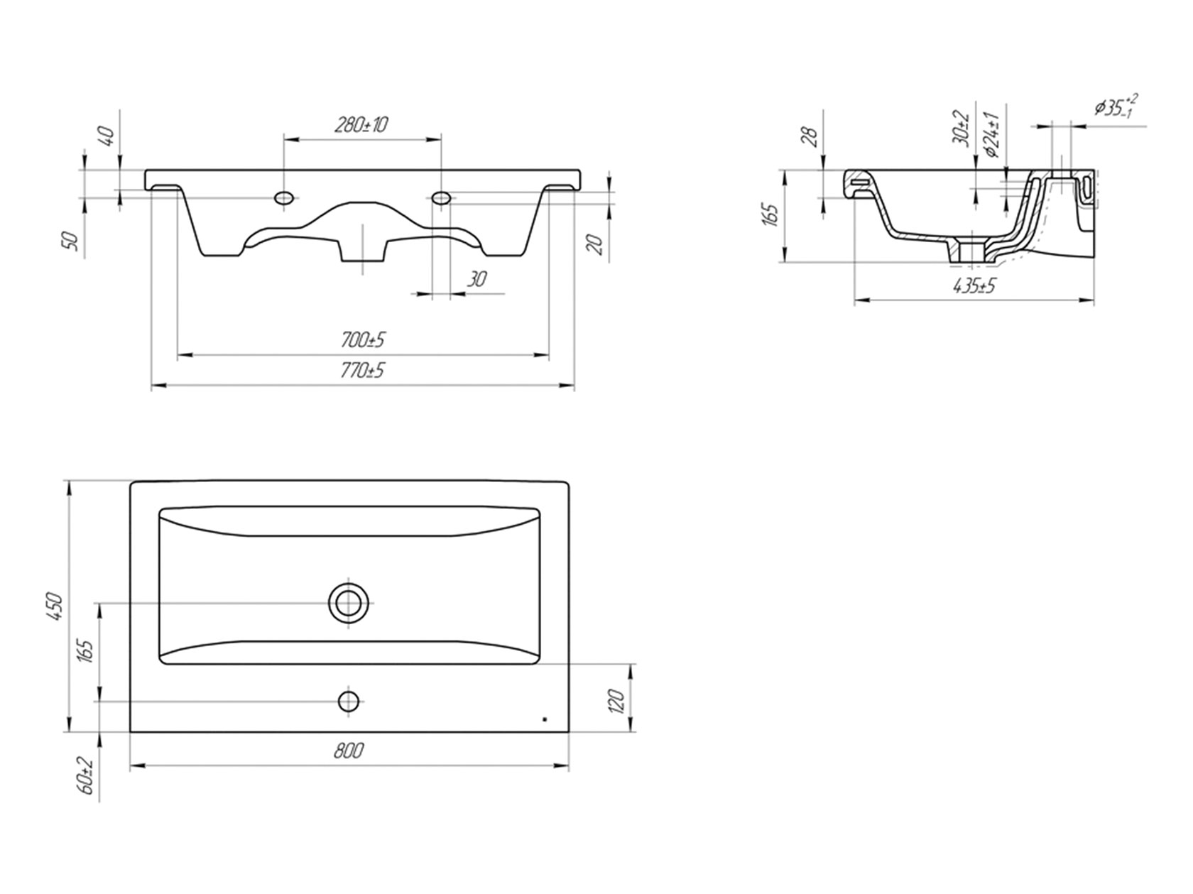 Раковина: 17 х 80 х 45 см.