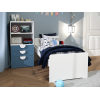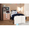Кровать с высоким изголовьем и плавными линиями станет любимым местом для отдыха и сна. Для одежды, учебников и других детских вещей предусмотрен компактный стеллаж, который поможет украсить комнату декором. Скругленные бортики гармонично сочетаются с выпуклыми ручками, создавая акценты интерьера.