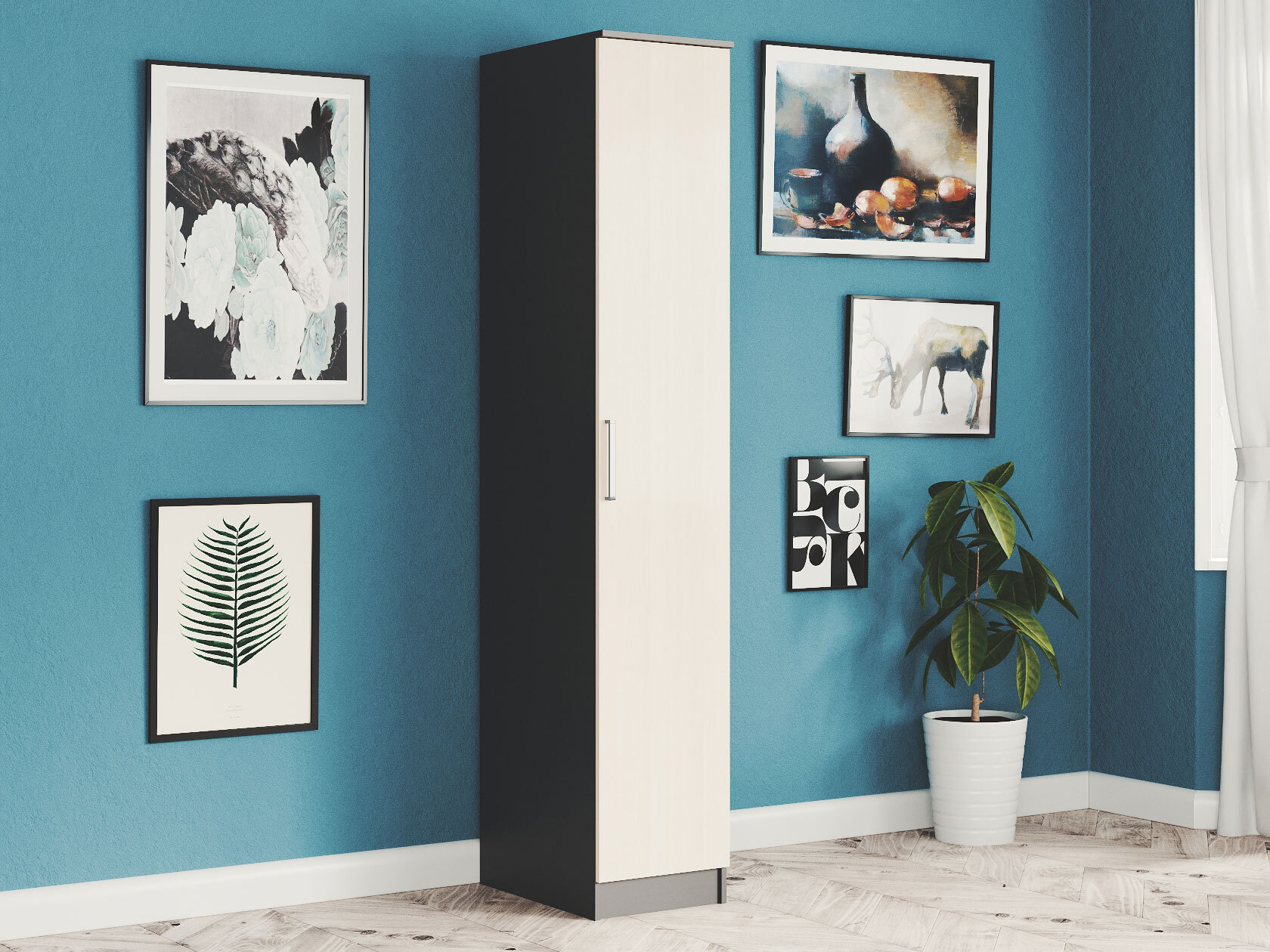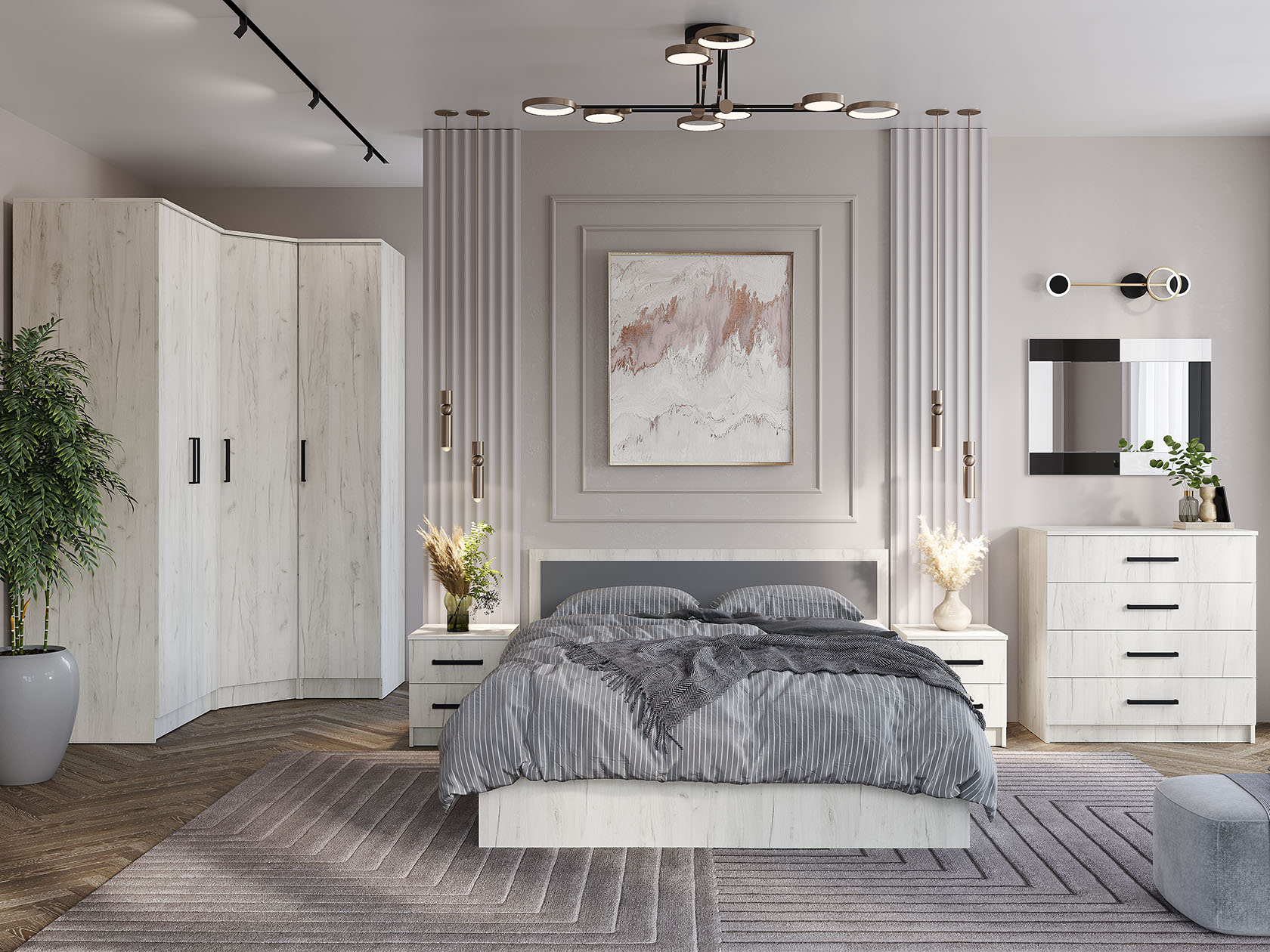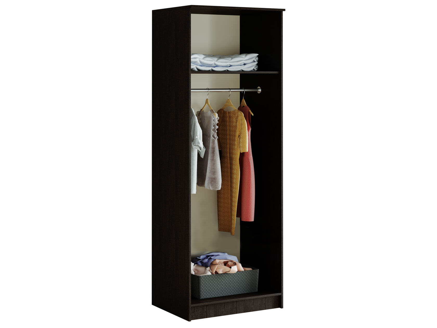 Продуманная организация внутреннего пространства в виде отделений со штангами и полок делают этот набор элементов незаменимым в любой комнате. Строгие линии и лаконичные фасады гармонично дополнят меблировку в разных интерьерных стилях.