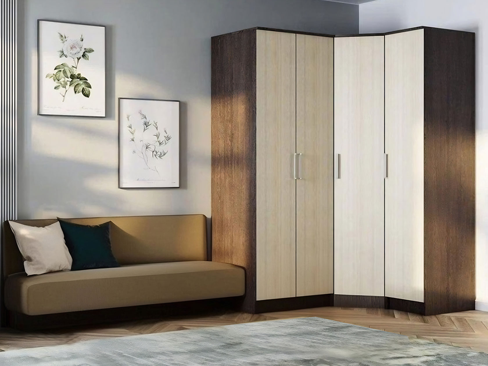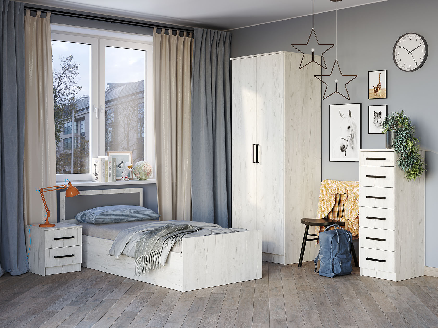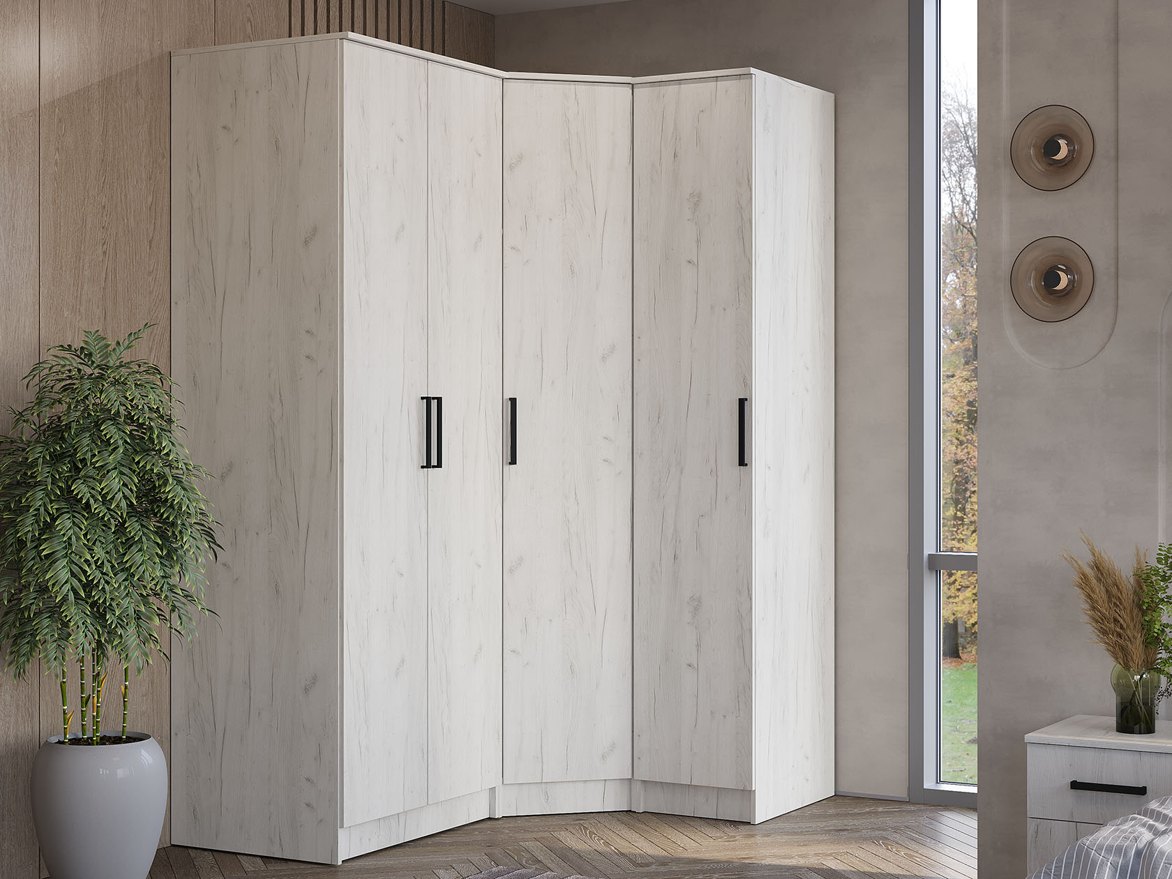 Продуманная организация внутреннего пространства в виде отделений со штангами и полок делают этот набор элементов незаменимым в любой комнате. Строгие линии и лаконичные фасады гармонично дополнят меблировку в разных интерьерных стилях.