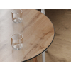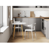 Компактная модель гармонично сочетается с разными стилями интерьера. Круглая поверхность практична и удобна в эксплуатации: не впитывает влагу, не портится от горячей посуды и легко моется. Высокие опоры, расположенные под углом, обеспечат устойчивость, а специальные подпятники сохранят напольное покрытие от повреждений.