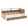 Изголовье и спинка защищают от контакта со стеной. Основание обеспечивает приток воздуха к матрасу, продлевая срок его службы. Выдвижной ящик имеет раздельные секции для удобного хранения постельных принадлежностей. Фотопечать в виде реечного декора создает стильный акцент дизайна.